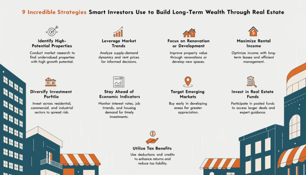 In this guide, we will explore 9 incredible strategies smart investors use to build long-term wealth through real estate, along with practical insights that can help you make smarter investment decisions.