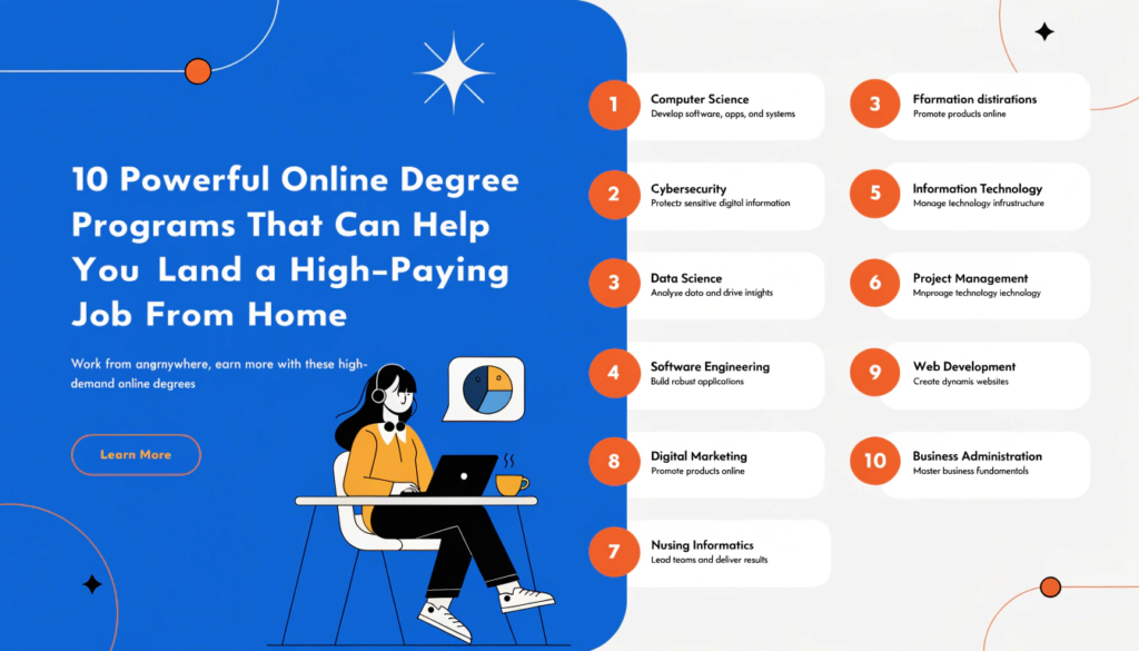 Online degree programs have opened new pathways for individuals seeking high-paying careers without leaving their homes. As remote work continues to grow, professionals with digital skills, business expertise, and technological knowledge are becoming increasingly valuable in the global job market.