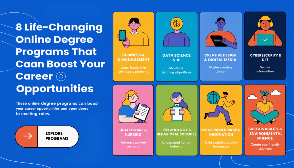 Online degree programs often focus on modern industries such as technology, business, healthcare administration, and digital marketing. These fields are particularly suited for remote work.
